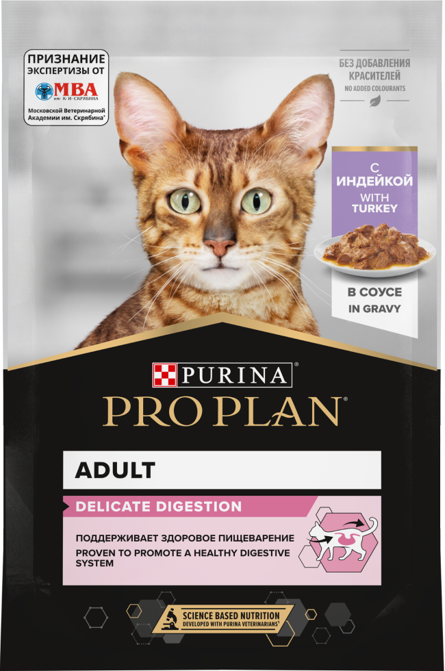 Для взрослой кошки среднего веса (4кг) требуется 3 пакетика в день, разделенных на два кормления. Индивидуальные потребности кошки могут варьироваться, и ежедневное количество корма должно быть скорректировано в соответствии с необходимостью поддержания оптимального веса кошки. Подавайте корм комнатной температуры. Следите, чтобы у вашей кошки всегда была чистая свежая питьевая вода.